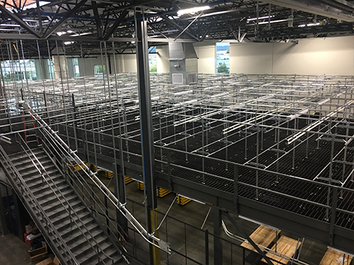 ICSS can install any of your material handling needs. Some examples are supporting roof structures, mezzanines, racking, shelving, steel structures, and conveyors. We also can install compressors, pneumatic airlines, lights, and lifts.